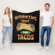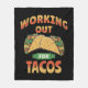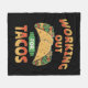 Ilustração engraçada colorida com o design de texto "Trabalhando para os Tacos" com decoração de Tacos para todos que amam comida mexicana