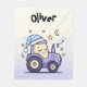Este cobertor para bebês do Trator Sonolento apresenta um doce trator lavanda vestindo um gorro de dormir listrado, cercado por um céu tranquilo de estrelas cintilantes e uma lua crescente. Projetado com pastéis suaves e calmantes, este gráfico pronto para a nursery é perfeito para histórias na hora de dormir, sonecas à tarde ou como um presente personalizado atencioso para o chá de bebê.