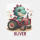 Um cobertor personalizado de velo branco que funde a cutensidade com a funcionalidade. Imaginem um bebê dinossauro encantador ao volante de um trator miniaturizado vermelho, criando uma experiência encantadora e imaginativa para jovens.