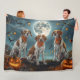 Libere o espírito assustador com esta design sombria do Dia das Bruxas apresentando um bando de cachorros sob um céu escuro e iluminado, cercado por morcegos voadores e abóboras brilhantes. Perfeito para aqueles que amam um toque de diversão terrível com seus amigos peludos!