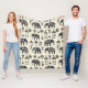 Rustic tribal elephant pattern blanket featuring bold black elephant silhouettes, geometric motifs, and folk-inspired details on a neutral textured background. A stylish and timeless design ideal for safari lovers, boho décor fans, nursery themes, and anyone who loves ethnic-inspired art.