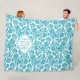 Cobertor De Velo Turquesa Monograma e Damasco Floral Branco
