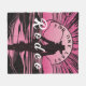 Uma Última Festa de Despedida de Solteira Rodeo, este design apresenta uma vaqueira com um visual de pôr do sol rosa e preto retrô. Ideal para qualquer festa de despedida de solteira.
