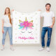 Este cobertor de velo personalizado apresenta um design de rosto de unicórnio fofo com flores cor-de-rosa, mana arco-íris e estrelas de brilho dourado. Personalize-o com um nome.