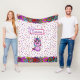 Adicione o nome da sua filha a este unicórnio fofo com borboleta no nariz e borboletas doces borrifadas roxas, rosa, cobertor azul do arco-íris.