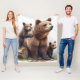 Uma bela representação de um urso pardo e seus dois filhotes, mostrando calor familiar e beleza da natureza. As cores vivas e detalhes requintados destacam os animais em seu hábitat natural.