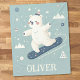 Este cobertor de velo das crianças personalizado apresenta um urso polar certeiro certeiro, todo voltado para o snowboard, completo com um capuz aconchegante.