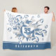 O cobertor da velinha de vôlei de uma garota bonita apresenta uma "explosão" de vários tamanhos, azul poeirento, cinzas e volicombolas brancas e cinzas poeirentas de estrelas azuis sobre um fundo branco personalizável - personalize com o nome do atleta e o número de camisa - a faixa azul na borda inferior é personalizável - katz_d_zynes