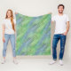 Uma tomada moderna do século médio: sobreposição de formas atômicas sobre uma cruz digital em verdes brilhantes e novos azuis.