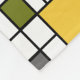 Esse cobertor médio tem um design moderno do século médio de uma grade de linhas pretas com quadrados e retângulos em cores retrorativas em um campo de branco.