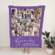 Elegante manta o saquê roxo para a melhor avó do mundo com "vovó" em um roteiro branco-na moda, uma colagem de 30 fotos de sua família e seus nomes na tipografia branca moderna.