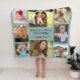 Um presente perfeito para a melhor avó do mundo. Este cobertor personalizado do velo de colagem verde-sábio apresenta oito fotos de seus netos, filhos, outros membros da família, animais de estimação etc. Personalize a "Melhor Avó do Mundo" e se ela é chamada de "Vovó", "Nana", "Abuela", etc., e adicione os nomes dos netos como uma assinatura.