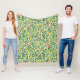 Flece Blanket em um padrão de limões, romãs e pêssegos, com flores, em William Morris Art Nouveau - fruta em laranja amarela e coral, com folhas verdes, contra fundo padronizado, amarelo e branco