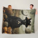 This whimsical Halloween artwork features a stylish black cat dressed as a Victorian witch, surrounded by a quirky array of jack-o'-lanterns under a surreal autumn sky. A perfect blend of spooky and charming, this fantasy print is ideal for Halloween lovers, gothic decor fans, and anyone who enjoys magical realism with a feline twist.