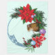 Rato castanho bonito na coroa de Natal. Ornamentos, poinsetos e nó celta azul funcionam na coroa de Natal.