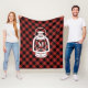 Um cobertor de velo com um padrão de xadrez vermelho e preto (búfalo). O centro apresenta uma ilustração de uma lanterna branca de acampamento. Personalize o primeiro em lanterna.