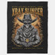 Este design de estilo ocidental tem um esqueleto num chapéu de vaqueiro e as palavras "xray slinger" acima dele.