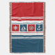 Design náutica com barco à vela, âncora, bússola e decoração das rodas de vela em fundo listrado