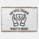 Este design de lançamento apresenta uma fonte impressão com letras pretas no anuário, mostrando a frase "Deus mudará o que é Dentro" com um coração mais dentro de conjunto de orações de ícone de mão neste tema de bíblia baseado na fé. Este cobertor é feito com 75% de algodão e 25% de poliéster com uma lavagem manual muito macia recomendada.