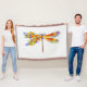 Pintura artificial, libélula floral em laranja e roxo contrastantes com papoila amarela, brilhante e florescente da Califórnia e flores silvestres azuis em fundo branco.