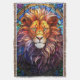Este leão majestoso criado no vidro manchado com estilo Tiffany parece elegante e vintage. Esta ilustração espantosa captura o charme do século passado.