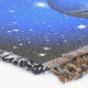ornamentos de decoração natalícia contra céu estrelado azul/preto
