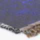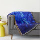 Um enxame de flocos de neve fractais azuis. O texto em espanhol, que lê "Feliz Navidad", aparece em azul e branco brilhantes.