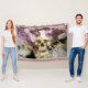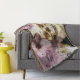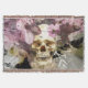 Caveira em flores cor-de-rosa e folhagem clara sobre o pano de fundo preto.