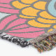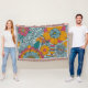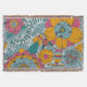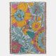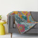Brilhante, alegre, corajoso, caprichoso, arte descreve melhor este cobertor divertido com grandes flores de laranja, azul e rosa com folhas e cipós de talho.