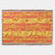 Um design cor, vivo e com dois tons de tona, com flores amarelas e laranja brilhantes contra fundo amarelo listrado e laranja.