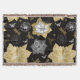 Lindas flores desenhadas à mão de cinzas ouros e borboletas brancas e brancas sobre fundo preto.