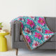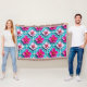Cobertor Flores Rosa em um Fundo Azul Geométrico