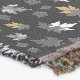 Um belo design de outono com cinzas, branco e folhas dispersas de ouro em um cobertor de lançamento.