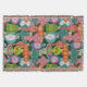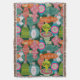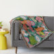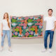 Este cobertor de lama tem uma design de Natal de um conjunto de vários ornamentos em muitas cores.