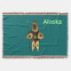 Uma imagem fractal em tons castanhos sugerindo um caçador Inuit altamente estilizado, vestindo roupas tradicionais de pele, segurando um arpão com cabeça de marfim. A leitura de texto "Alaska" aparece em verde e branco brilhantes.