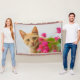 Um gatinho vermelho curioso está te observando, espreitando por trás de um bougainvilla florescente com olhos revoltantes, retrato. Este cobertor tecido é uma ideia de presente para amantes de gatos. Um gatinho giro fotografado por Katho Menden.