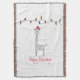 Imagem de girafa desenhada à mão com o chapéu vermelho de Papai Noel, uma série de luzes de férias e texto personalizável de "Feriados Felizes"