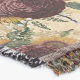 Um padrão ricamente detalhado de girassóis ouros, ranúnculos castanhos, frentes verdes de samambaia, ramificações de pássaros em cima de um fundo monocromático esqueo