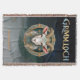 Wrap yourself in dark fantasy style with this Grimmloch woven throw blanket, featuring the official emblem of the narrative-based RPG by Opulent Code LLC. The detailed horned goat crest, paired with rich teal and gold tones and full Grimmloch branding, creates a bold and immersive design with a textured, tapestry-like finish.