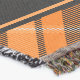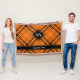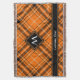 Amostra moderna de tartã laranja e preto de halloween. Texto personalizado e monograma.
