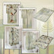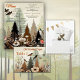 Uma ilustração encantadora de arte num estilo moderno retrata vários pinheiros verdes, altos, leves, médios e escuros, com um fundo cremoso