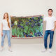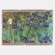 As íris foram pintadas em 1889 quando Vincent van Gogh estava vivendo no asilo no santo Paul-de-Mausole em Santo-Rémy-de-Provence, France, no ano passado antes de sua morte em 1890. Uma exposição impressionante das íris violetas com as folhas vibrantes do verde, solo rico do terracotta, contra uma gota traseira de cravos-de-defunto alaranjados brilhantes e de uma única íris branca. Esta imagem foi aumentada digital para restaurar as cores corajosas, brilhantes originais e os esboços fortes. Um presente perfeito para algum amante da arte!