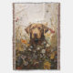 Este cobertor apresenta uma descrição artística detalhada de um labrador de chocolate cercado por uma variedade vibrante de flores silvestres. A design mostra cores suaves e harmoniosas, criando uma cena pacífica e cativante para qualquer sala. Ideal para donos de cães, entusiastas de animais de estimação, e para aqueles que apreciam a decoração inspirada na natureza. Este cobertor adiciona um sotaque único e elegante ao seu espaço vivo, quarto, ou faz um presente pensativo. O cobertor de lançamento também poderia ser usado como um pendurado na parede. Aproveite o calor e a arte sofisticada que este cobertor traz à sua casa.