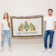 This throw blanket features two leopards surrounding a Christmas tree with leopard print ornaments. There is a leopard print border around the edge. You can personalize with a name.