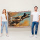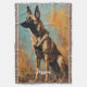 Um malinois negro e brando alemão se coloca contra um fundo de queda.