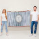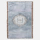 O lançamento vintage é projetado com listras de água-forte Moire, centralizado com medalhão floral Barroco. Personalizado com nomes (1º e último nome ou nomes de um casal). Listras azuis-cinza e o visual vintage criam um lançamento chique para um quarto ou sala.