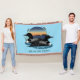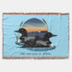 Dois leões no lago com um pôr do sol e se encaixam atrás deles num pano de fundo de azul