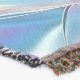 Um design geométrico azul, laranja, dourado e roxo iridescente, metálico perfeito para um cobertor.