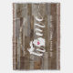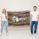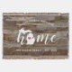 Mostre orgulho de seu estado natal com este lindo cobertor rústico de madeira falsa com a palavra "home" em letras brancas em caligrafia, com um mapa em silhueta do estado de Michigan no lugar da letra "O". Um coração rosa ilustrado dentro do mapa do estado completa o design; você pode mudar a posição do coração para a cidade onde mora ao abrir a ferramenta de design e arrastar a forma de coração para o seu local favorito. Personalize com a cidade onde mora, nome da família e ano de fundação para criar um presente de casa nova perfeito e memorável ou um adendo à sua nova casa.