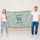 Cobertor Monograma de Folhas Botânicas Verdes Teais